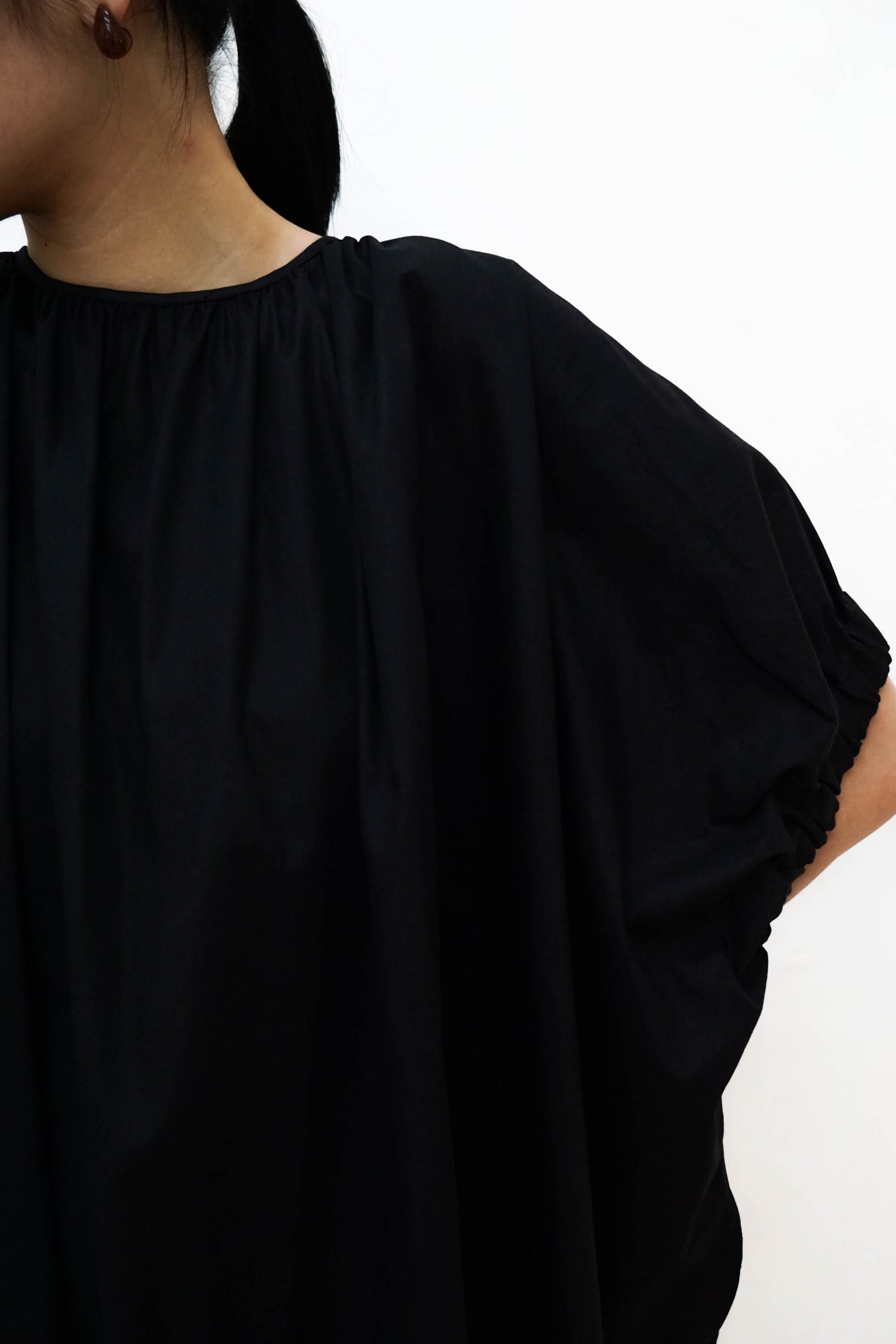 Round neckline with ruched detail